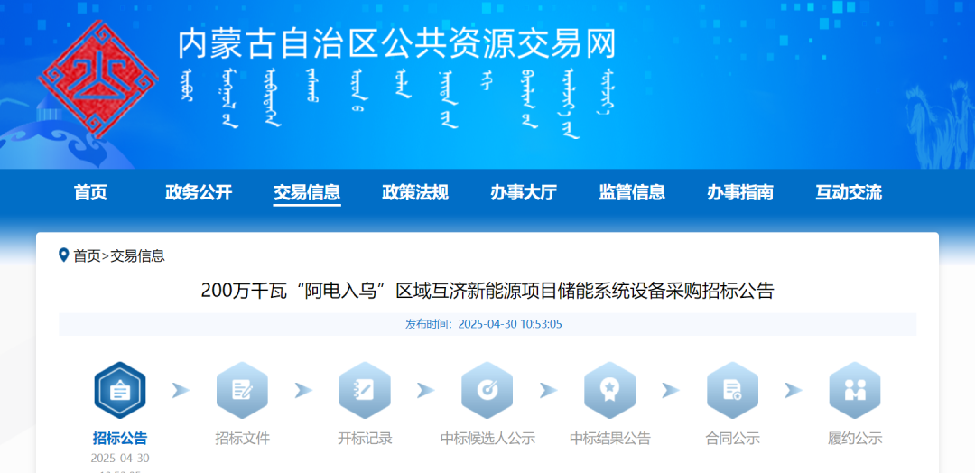 200万千瓦“阿电入乌”区域互济新能源项目储能系统设备采购招标公告